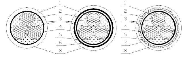 5隔離套(內襯層)) 6鎧裝鋼帶 7鎧裝鋼絲 8外護套