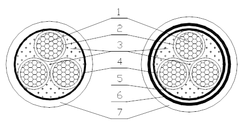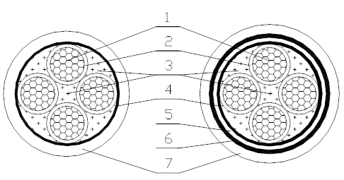 第四位:鎧裝層代號 2 —— 雙鋼帶;3 —— 細圓鋼絲;4 —— 粗圓鋼絲;