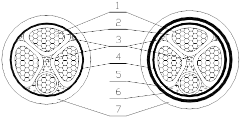 1 導體 2 絕緣 3填充 4 包帶 5 內襯層 6 鋼帶 7 外護套